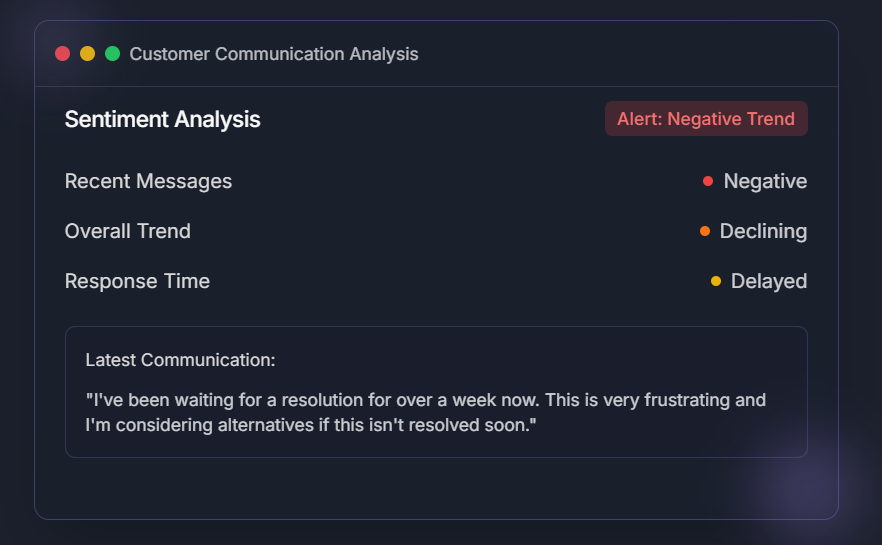 Cuando se detecta un sentimiento negativo, el sistema activa alertas para los miembros del equipo designados.