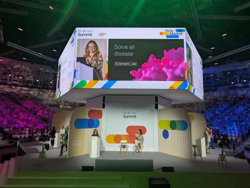 Tras la sesión de apertura, el escenario 360 se divide en 6 secciones diferentes, cada una capaz de albergar una presentación independiente del resto. En originalidad no podemos restarle ningún punto al Summit. Asistimos a todas las sesiones qué pudimos y la qué más nos ha entusiasmado ha sido la de Isomorphic Labs.